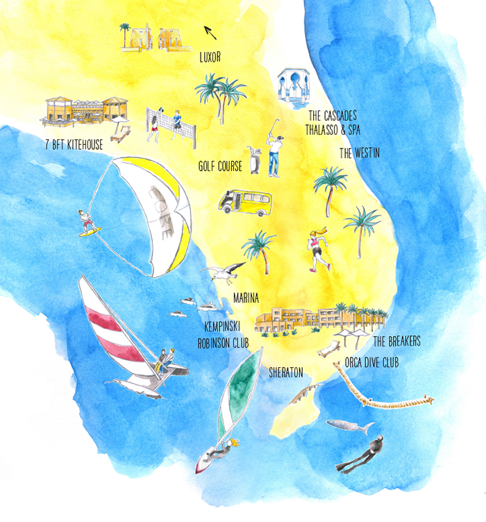 Für Sportler ist die Halbinsel ein wahrer Tummelplatz auf internationalem Top Niveau. Und das alles nur 4 Flugstunden von Zentraleuropa entfernt. Zwei statistische Regentage, milde Winter, die Temperatur des Meerwassers liegt ganzjährig über 20 Grad. Die heißesten Monate sind Juli und August mit Durchschnittstemperaturen von 34 Grad. Die Hitze fühlt sich aber angenehm an, da die trockenen Wüstenwinde die Luftfeuchtigkeit gering halten. Folglich hat Somabay das ganze Jahr über beste Wetterbedingungen.