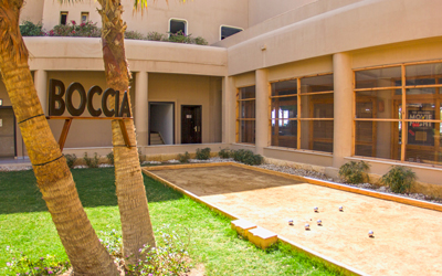 Entspannter Zeitvertreib: Genießen Sie eine ruhige Runde Boccia direkt neben dem Fitnessstudio. Ein perfekter Weg, den Tag entspannt mit Freunden oder Familie zu verbringen.